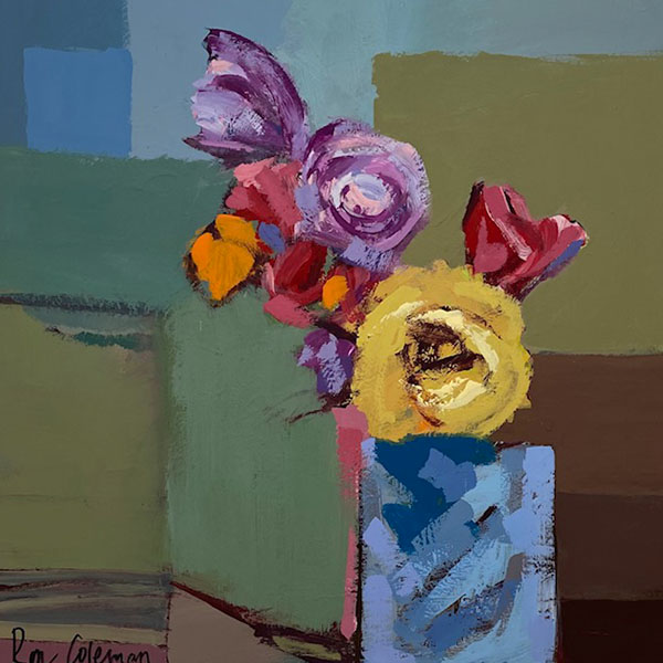 Ron specialises in painting abstract expressionist work, using colour, form, and texture to create balanced compositions. The resulting abstract image may have had it’s origin in remembered landscape, journey, or destination. The painting may be a response to a feeling at some time, or in some situation. Ron’s driving force is colour and form and he uses an abstract expressionist approach to his painting. His paintings have a balance and harmony that results from the handling of colour relationships, texture and vibrant brushwork, and from the careful, thoughtful, but sometimes serendipitous arrangement of form and colour.